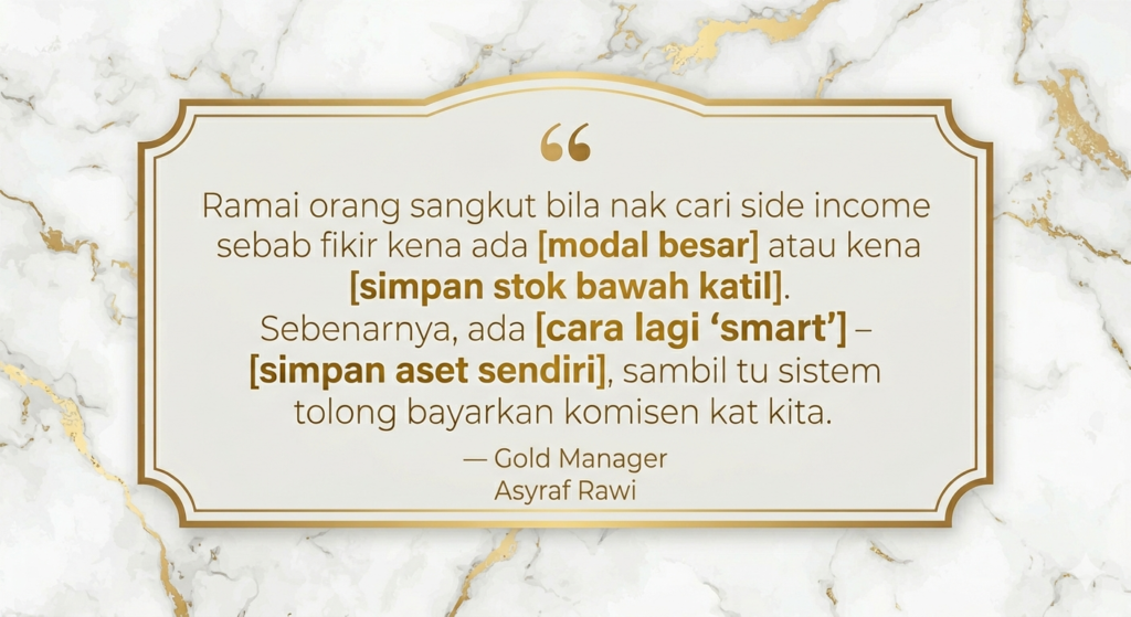 Sebenarnya, ada cara yang lebih cepat untuk buat emas bekerja untuk kita: Jadikan simpanan emas tu sebagai “lesen” untuk menjana pendapatan tambahan kita setiap bulan.