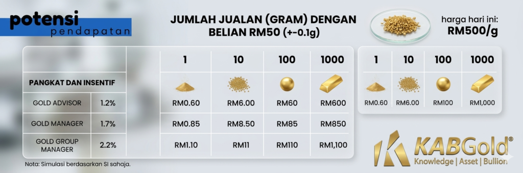 3. Aset Tetap Di Tangan: Sambil kita jana insentif, Gram emas dalam akaun emas kita tetap bertambah.