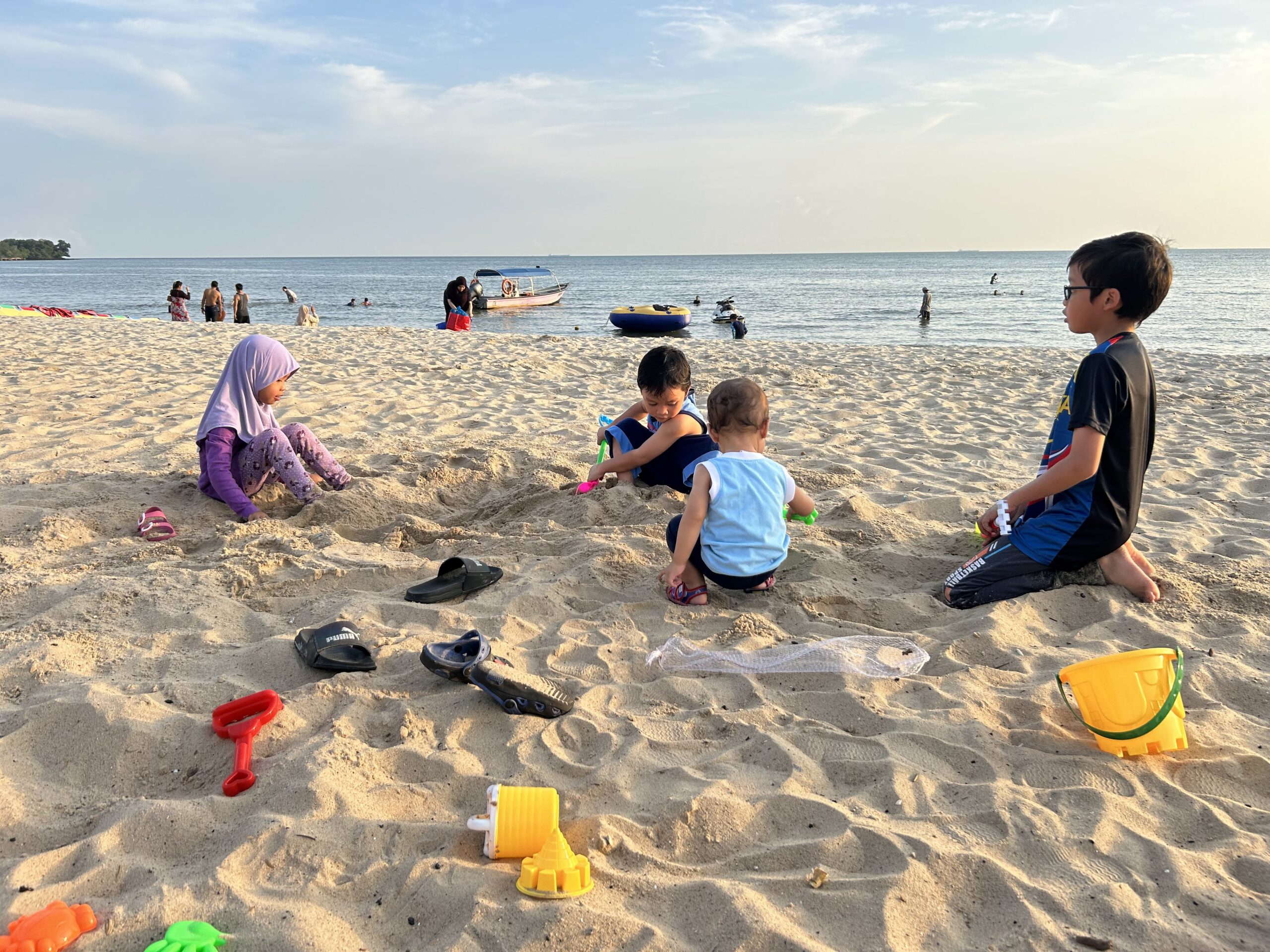Bila dah sampai PD, kami pusing pusing dulu sekitar PD dan singgah jap di Pantai. Rehat dan tengok anak anak bermain pasir.