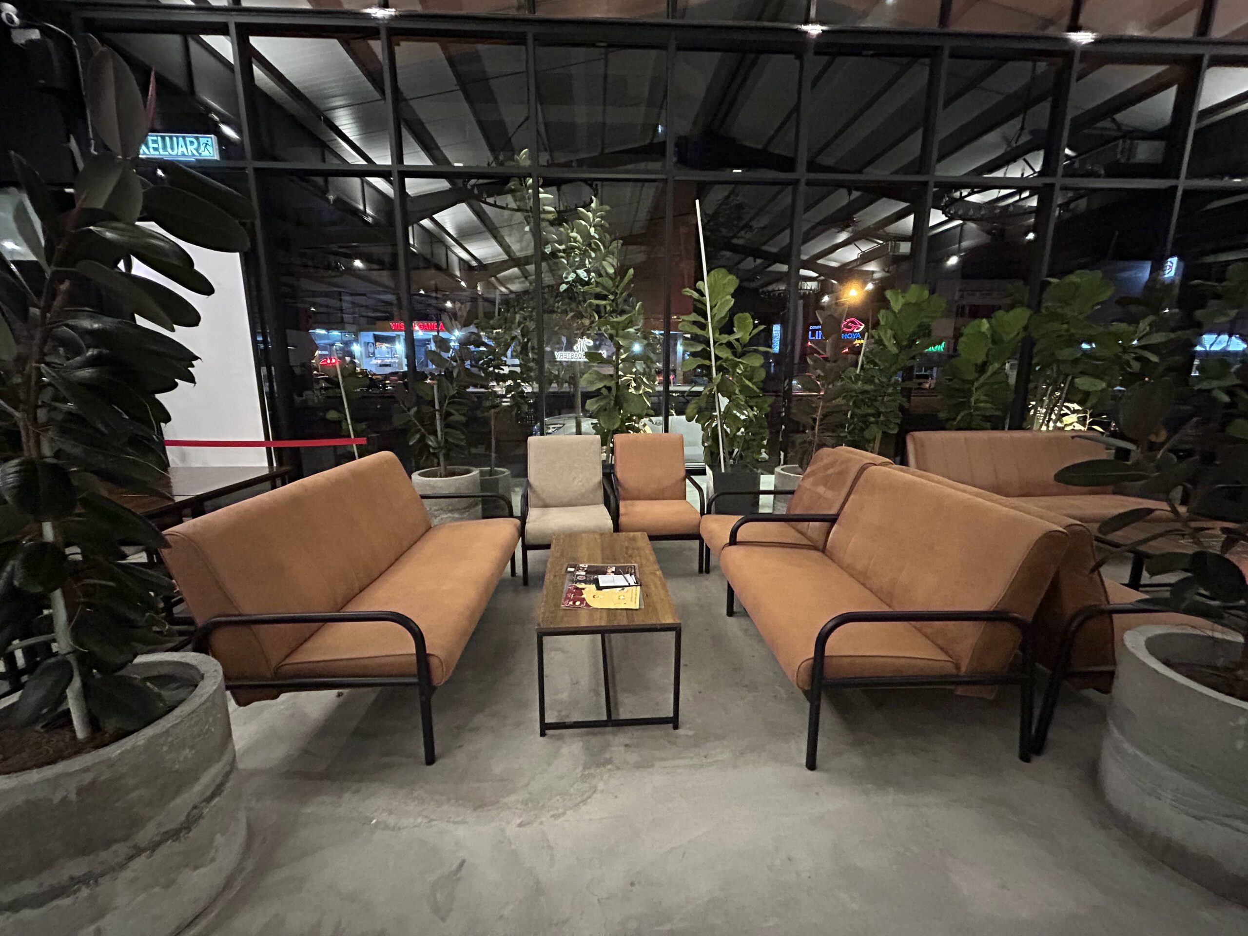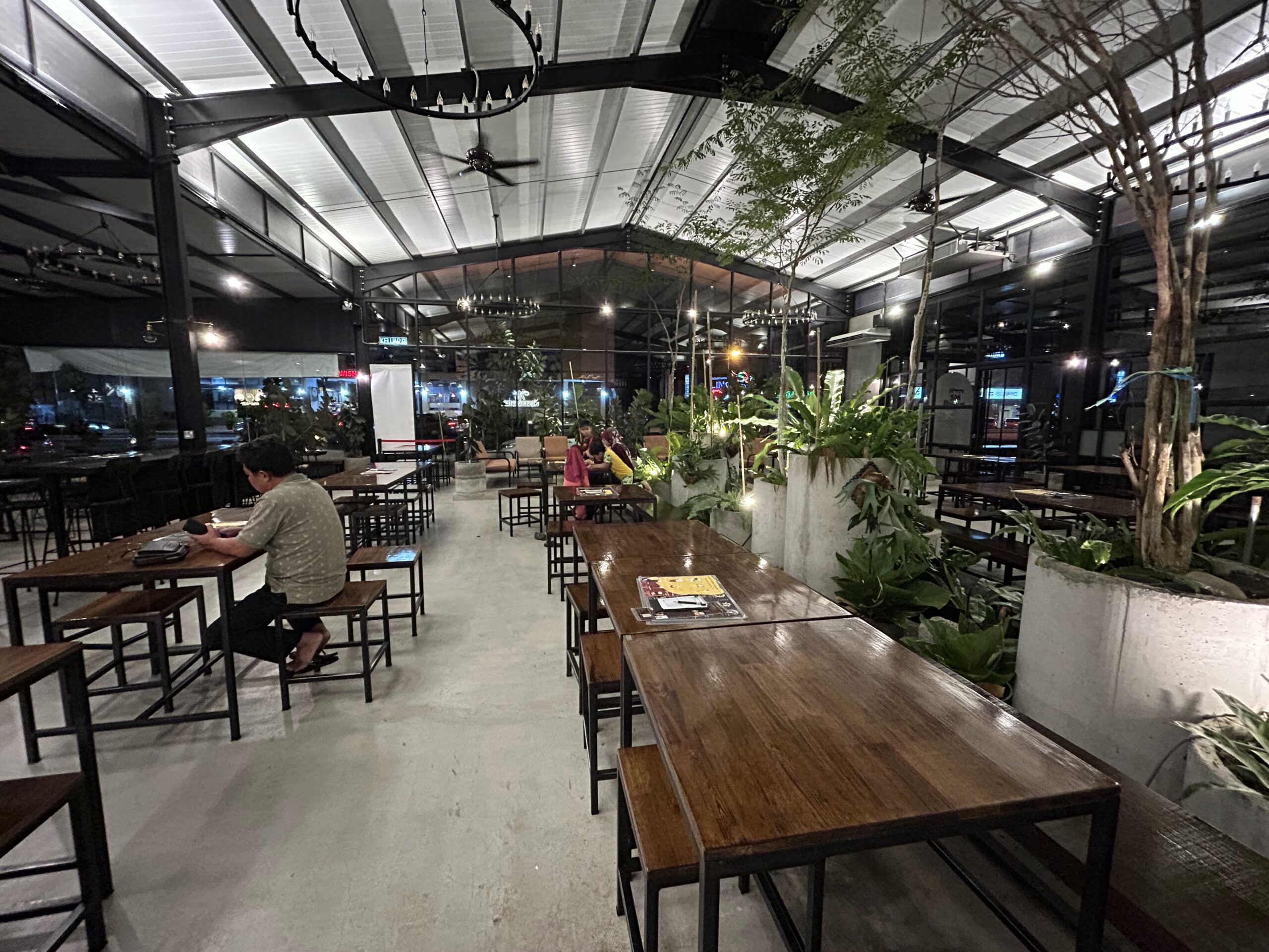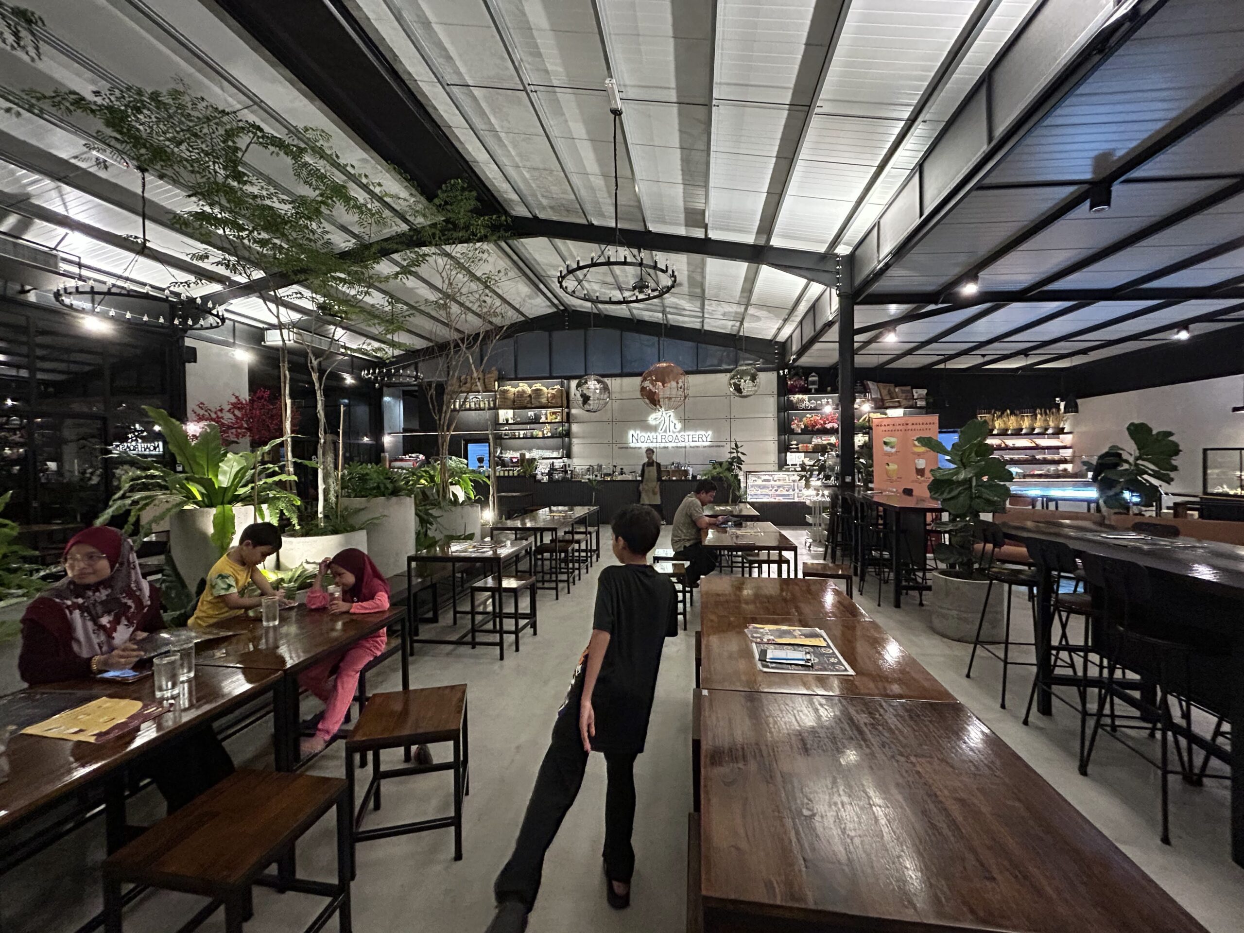 Noah Roastery menampilkan konsep greenhouse glass café yang moden dan estetik, dengan penggunaan kaca yang membolehkan cahaya semula jadi membanjiri ruang dalaman. Reka bentuk ini mencipta suasana yang terang dan lapang, sesuai untuk bersantai atau bekerja. (Sitiawan Noah Roastery Cafe The Ark Specialty Coffee Brew Setiawan …)